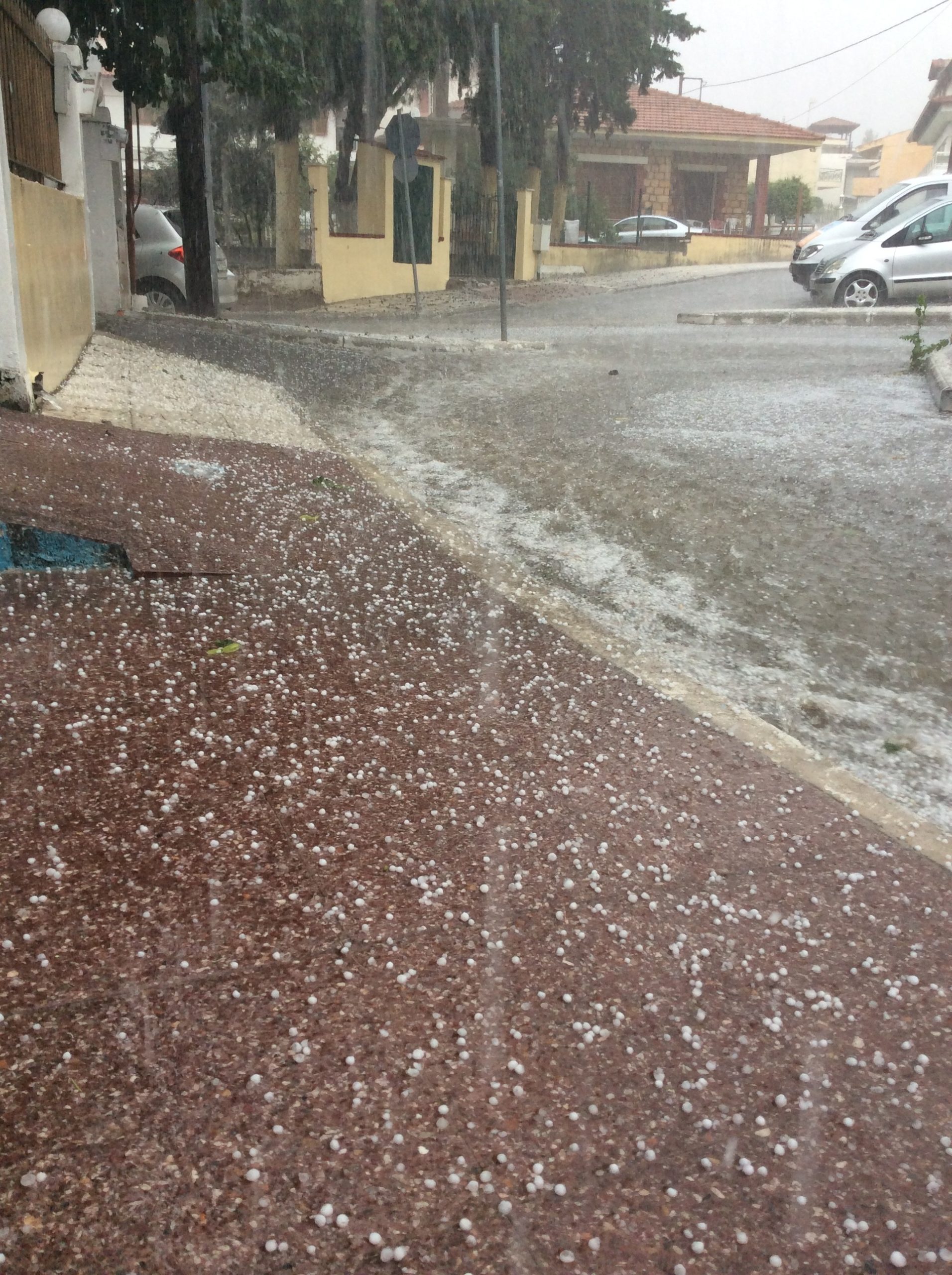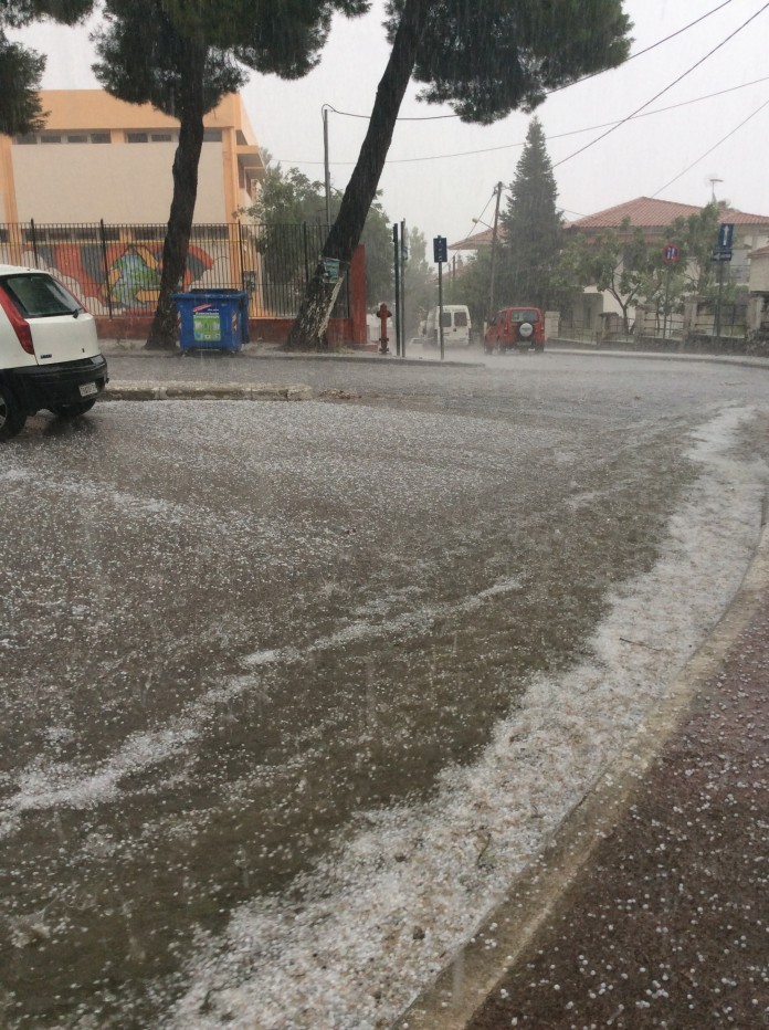 Από τις έντονες καταιγίδες οι δρόμοι της πόλης μετατράπηκαν σε ποτάμια με αποτέλεσμα να δημιουργηθούν προβλήματα στην κίνηση των αυτοκινήτων.