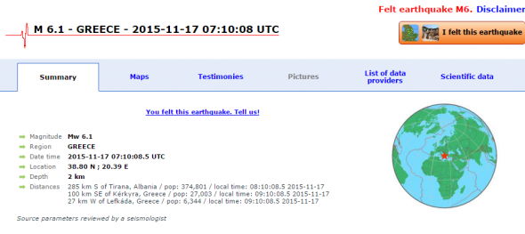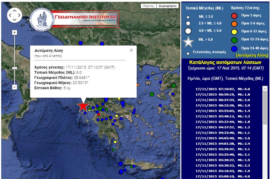 Σύμφωνα με το ευρωμεσογειακό που σημειώθηκε πριν από λίγο στη Λευκάδα ήταν εντάσεως 6,1 βαθμών της κλίμακας Ρίχτερ.