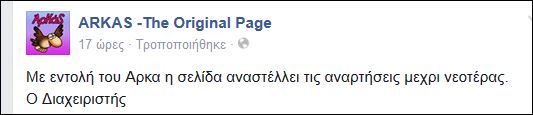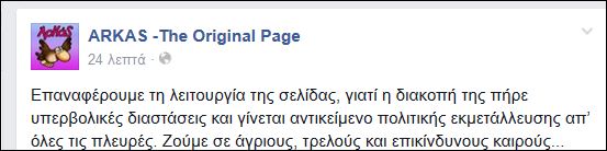 Λίγες ώρες αργότερα ο Αρκάς… επέστρεψε στο Facebook, καθώς έδωσε εντολή για την επαναλειτουργία της σελίδας του με τον διαχειριστή να γράφει: