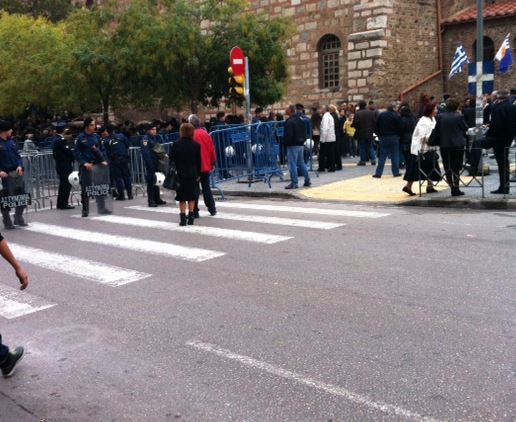 Ισχυρή είναι και η αστυνομική παρουσία. Πολύς κόσμος έχει κατακλύσει από νωρίς τον Ιερό Ναό, με αποτέλεσμα η αστυνομία να μην επιτρέπει άλλον κόσμο να εισέλθει. Έξω από την εκκλησία σχηματίζονται ουρές και ο κόσμος εκφράζει τη δυσαρέσκειά του για το γεγονός ότι δεν μπορεί να μπει στον ναό.