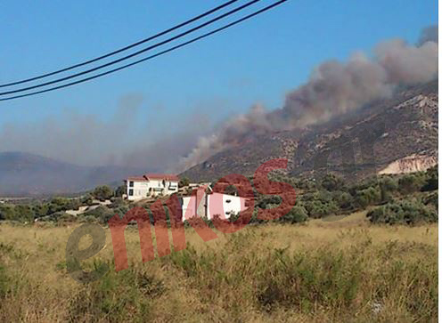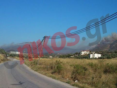 Οι ισχυροί άνεμοι που πνέουν στην περιοχή δυσχεραίνουν το έργο της κατάσβεσης. Η πυρκαγιά εκδηλώθηκε σε δύσβατο σημείο και επεκτάθηκε λόγω των ανέμων, με συνέπεια να καούν σπίτια.