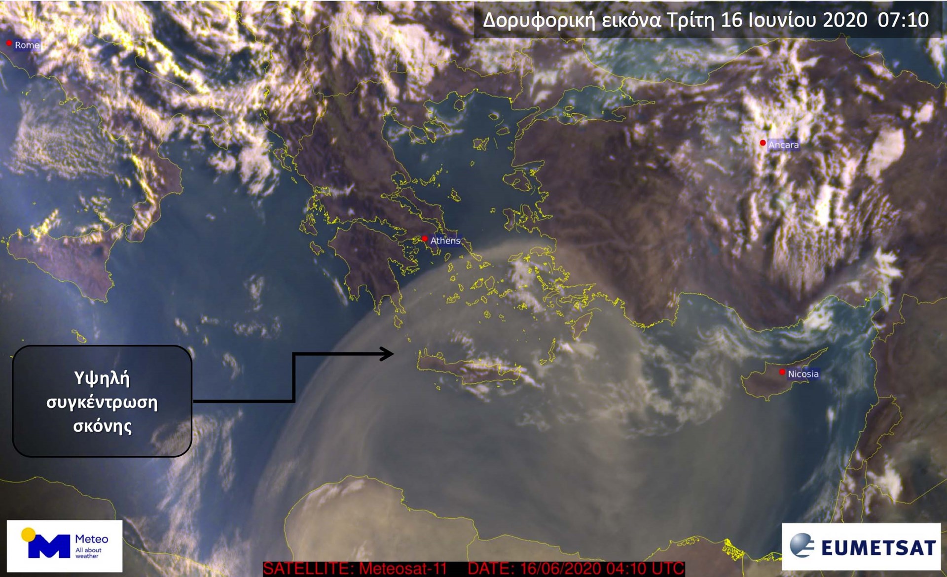 Στην Νότια Ελλάδα από το πρωί παρατηρείται υψηλή συγκέντρωση αφρικανικής σκόνης. Η στροφή και ενίσχυση των ανέμων από βορειοδυτικές διευθύνσεις το απόγευμα θα απομακρύνει το νέφος σκόνης, βελτιώνοντας την ποιότητα του αέρα στις Κυκλάδες, στα Δωδεκάνησα και την Κρήτη.