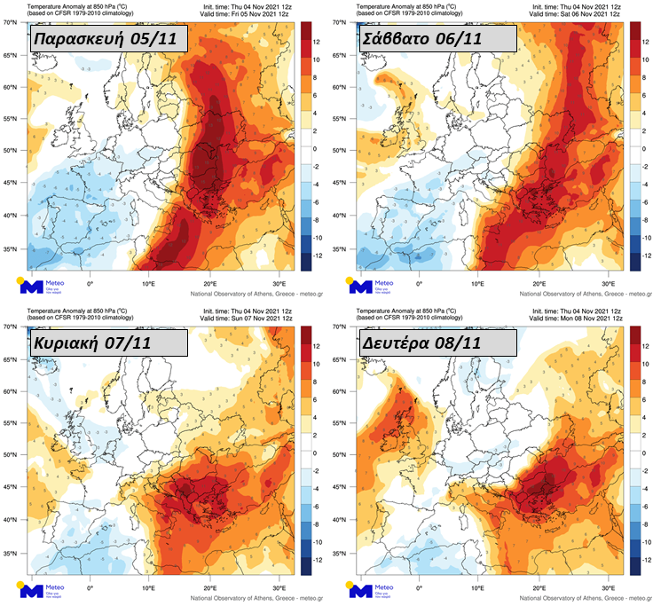 Σύμφωνα με τα προγνωστικά στοιχεία του Εθνικού Αστεροσκοπείου Αθηνών/meteo.gr, οι θερμοκρασίες θα κυμανθούν σε υψηλά για την εποχή επίπεδα, και αναμένεται να φτάσουν έως και 7 βαθμούς πάνω από τις κανονικές για την εποχή τιμές.