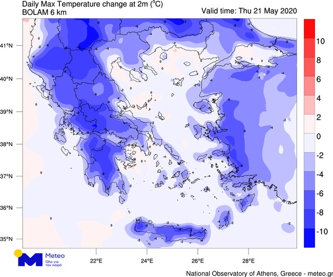 Υποχωρεί πλέον το κύμα των πολύ υψηλών θερμοκρασιών που επηρέασε την Ελλάδα τις τελευταίες ημέρες, δίνοντας τη θέση του σε ένα εντελώς διαφορετικό σκηνικό του καιρού, με τοπικά ισχυρές βροχές και καταιγίδες, καθώς και πτώση της θερμοκρασίας έως δέκα βαθμών, σύμφωνα με το meteo του Εθνικού Αστεροσκοπείου Αθηνών. Πιο αναλυτικά, τις βραδινές ώρες απόψε, βροχές και σποραδικές καταιγίδες θα εκδηλωθούν στο Ιόνιο και στα δυτικά ηπειρωτικά, φαινόμενα που κατά τη διάρκεια της νύχτας θα ενταθούν σημαντικά και θα διατηρηθούν έντονα έως και τις απογευματινές ώρες της Πέμπτης. Κατά τη διάρκεια της Πέμπτης ισχυρές βροχές και καταιγίδες θα εκδηλωθούν σε μεγάλο μέρος της ηπειρωτικής χώρας, συμπεριλαμβανομένης της Θεσσαλονίκης, φαινόμενα που μέχρι το βράδυ της Πέμπτης θα επεκταθούν στην Εύβοια, στις Σποράδες και ενδεχομένως στη Βόρεια Αττική. Παράλληλα, σημαντική πτώση θα παρουσιάσει η θερμοκρασία σε ολόκληρη τη χώρα με τις μέγιστες θερμοκρασίες την Πέμπτη να είναι έως και δέκα βαθμούς χαμηλότερες σε σχέση με τα επίπεδα της Τετάρτης.