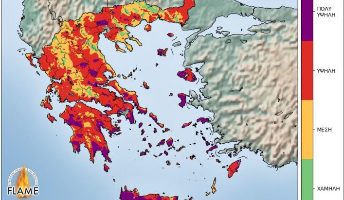 Με βάση τα τελευταία διαθέσιμα προγνωστικά στοιχεία που ανέλυσε η πυρομετεωρολογική ομάδα FLAME του Εθνικού Αστεροσκοπείου Αθηνών (ΕΑΑ) / Meteo.gr, δυσμενείς θα παραμείνουν οι πυρομετεωρολογικές συνθήκες στο μεγαλύτερο τμήμα της χώρας κατά τη διάρκεια της νέας εβδομάδας (25/07 – 31/07/2022). Αιτία για αυτό αποτελεί η εμμονή των υψηλών θερμοκρασιών, η οποία σε συνδυασμό με τις ξηρές ατμοσφαιρικές συνθήκες ευνοεί την αποδοτική αύξηση της ευφλεκτότητας των δασικών καυσίμων. Επιπροσθέτως, από την Τετάρτη 27/07/2022 αναμένουμε ενίσχυση των βόρειων ανέμων στο Αιγαίο έως τουλάχιστον μέχρι και το Σαββατοκύριακο 30/07-31/07/2022.