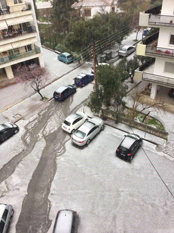 Στις φωτογραφίες που δημοσιεύουν τα Καιρικά Νέα Θράκης, φαίνονται οι δρόμοι και τα αυτοκίνητα να έχουν “ντυθεί” στα λευκά από το χαλάζι και να θυμίζουν χιονισμένο τοπίο.