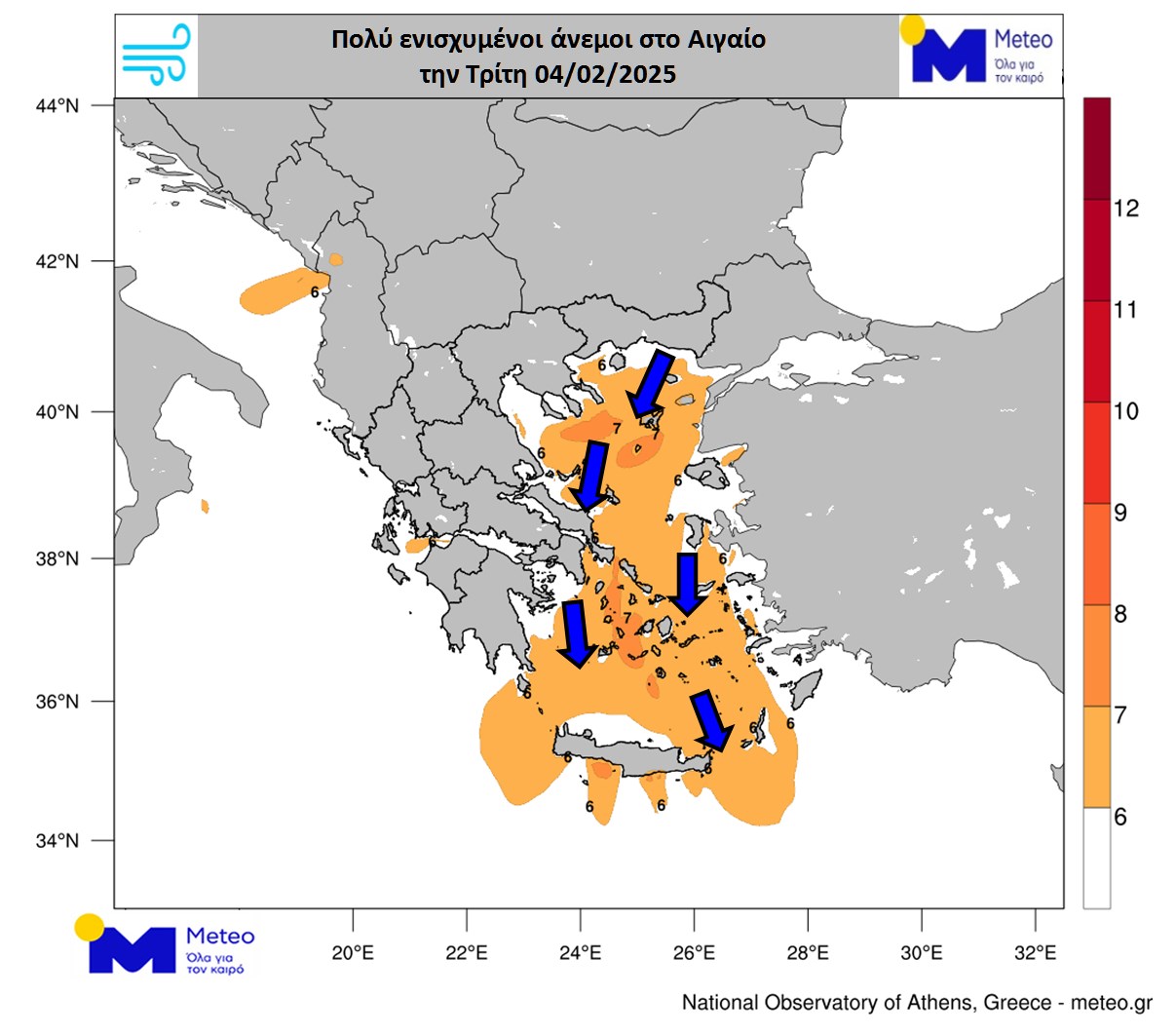 Πολύ ενισχυμένοι άνεμοι βορείων διευθύνσεων, με εντάσεις 6-7 μποφόρ και ενδεχομένως πρόσκαιρα τοπικά 8 μποφόρ, θα επικρατήσουν στο Αιγαίο.