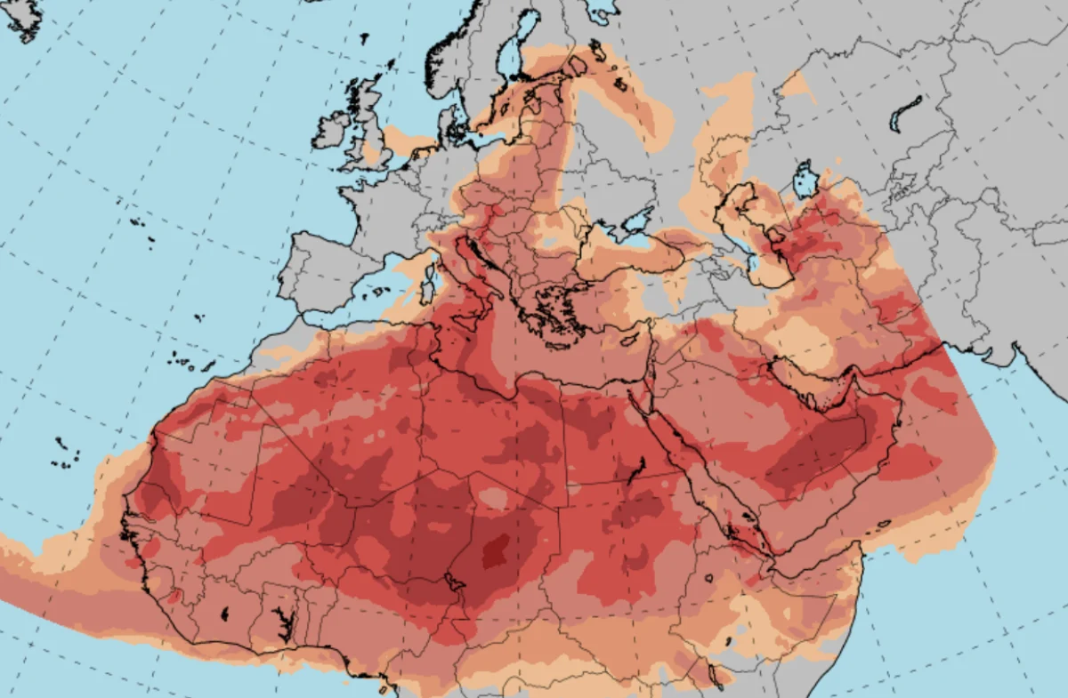 Μέχρι και την Βαλτική έχει φτάσει η σκόνη σήμερα , καλύπτοντας παράλληλα μεγάλο μέρος της Κεντρικής και ανατολικής Ευρώπης.