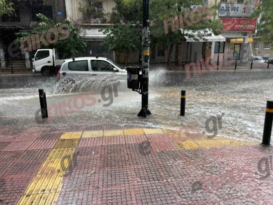 Όπως μπορείτε να δείτε στο βίντεο και φωτογραφίες που έστειλε αναγνώστης του enikos.gr, οι δρόμοι στην Πατησίων έχουν μετατραπεί σε ποτάμια.