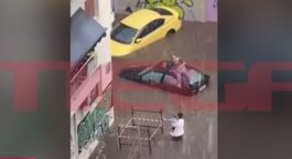Κακοκαιρία «ΑΤΕΝΑ»: Ζευγάρι ανέβηκε στην οροφή αυτοκινήτου για να σωθεί από τα ορμητικά νερά – Δείτε βίντεο