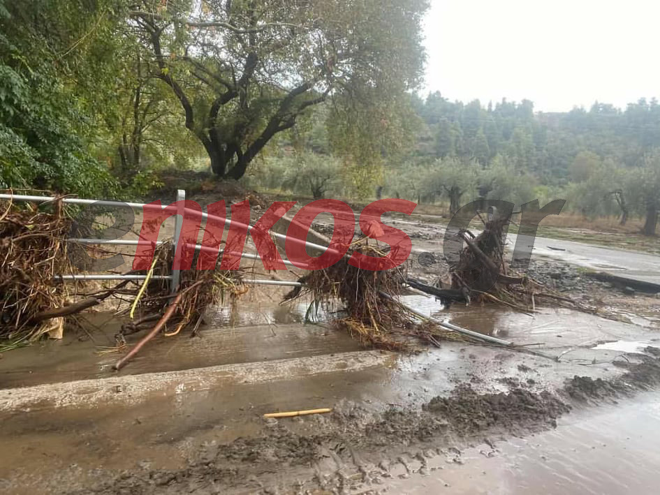 Τα ορμητικά νερά “γκρέμισαν” ακόμη και τα κάγκελα σε γέφυρα της περιοχής ενώ παντού υπάρχουν φερτές ύλες.