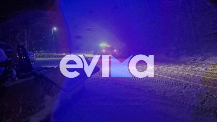Ξεκίνησε η σφοδρή επέλαση του χιονιά σε περιοχές της Εύβοιας λίγο πριν από τα μεσάνυχτα της Δευτέρας.