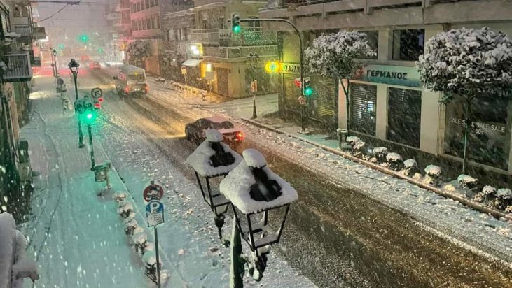 Η χιονόπτωση άρχισε λίγο μετά τις 22.30 της Τρίτης και όσο περνά η ώρα γίνεται ολοένα και πιο έντονη, με αποτέλεσμα να καλυφθούν αυτοκίνητα, κτίρια και πάρκα και η χιονόστρωση να φτάνει και πάλι ως τη θάλασσα.