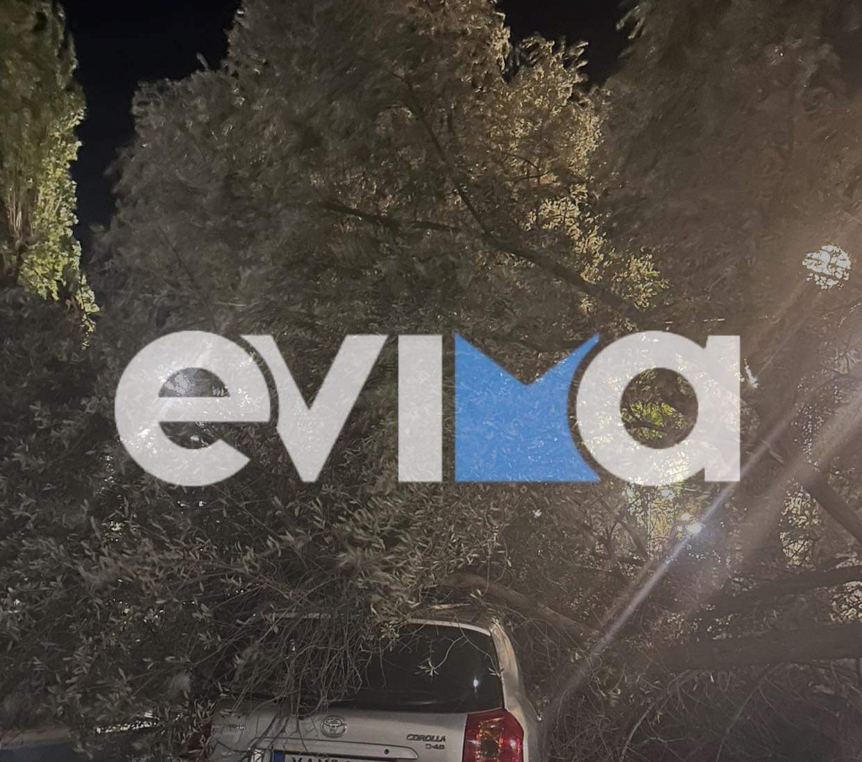 Εξαιτίας των ανέμων ξεριζώθηκαν δέντρα και έπεσαν πάνω σε αυτοκίνητα που ήταν σταθμευμένα.