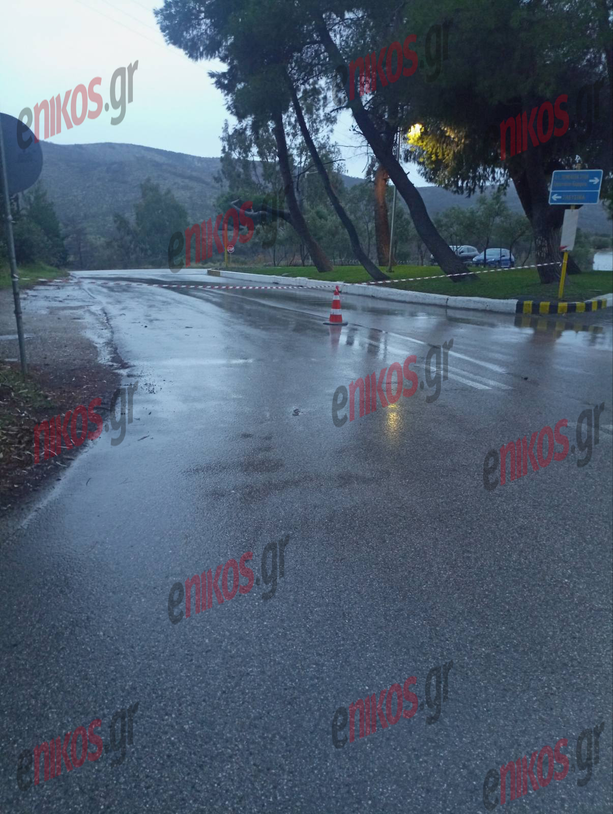 Ένα «μείγμα» λάσπης, βροχής και φερτών υλικών αντικρίζει κανείς όταν φτάνει κοντά στο σημείο ενώ οι Αρχές έχουν βάλει κορδέλα απαγόρευσης της διέλευσης των οχημάτων και των πεζών.