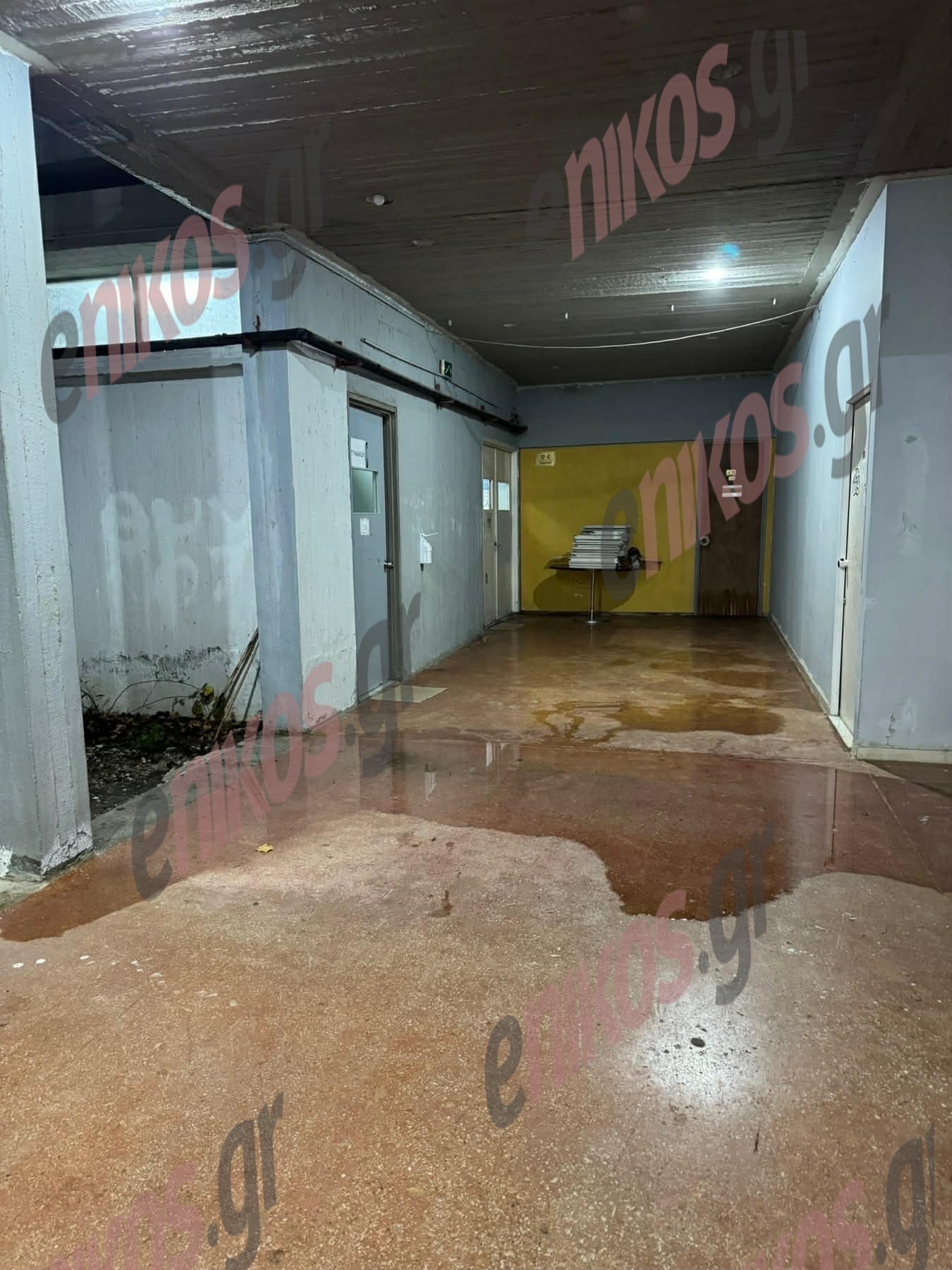 Εκτός από τους εσωτερικούς χώρους που πλημμύρισαν, «από την εξωτερική πρόσοψη του κτιρίου έχουν πέσει κομμάτια απο σοβά. Από θαύμα δεν έχει υπάρξει κάποιος τραυματισμός», υπογράμμισε ακόμη ο κ. Καραγεωργούδης.