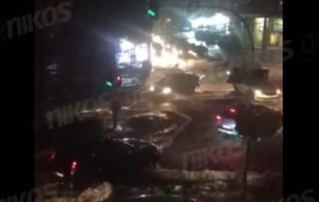 Σε βίντεο που έστειλε αναγνώστης του enikos.gr διακρίνεται ένας κεντρικός δρόμος να έχει μετατραπεί σε «ποτάμι». Τα οχήματα μοιάζουν με… βάρκες καθώς προσπαθούν να κινηθούν στη συμβολή της Λ. Ελευθερίου Βενιζέλου με την Παναγούλη.