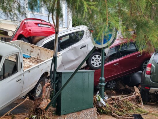 Χαρακτηριστικές είναι οι εικόνες από την Μηλίνα και την Τσαγκαράδα, που δημοσίευσαν κάτοικοι και επισκέπτες στα κοινωνικά δίκτυα. Αυτοκίνητα παρασύρθηκαν από τα ορμητικά νερά και κατέληξαν στραπατσαρισμένα το ένα πάνω στο άλλο, σχηματίζοντας ένα «βουνό». Άλλα κατέληξαν στη θάλασσα, μαζί με καρέκλες και τραπεζάκι που παρασύρθηκαν από τους χειμάρρους.