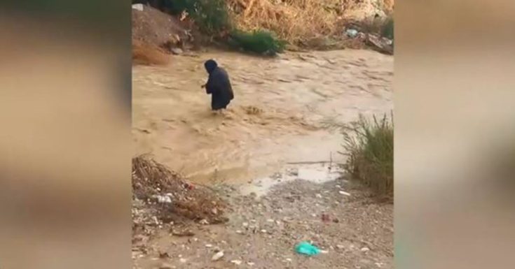 Όπως φαίνεται στα πλάνα του ΣΚΑΙ, ο άνδρας προσπάθησε να περάσει στην απέναντι πλευρά του δρόμου με τεράστιο κίνδυνο και τελικά παρασύρθηκε από τον χείμαρρο.