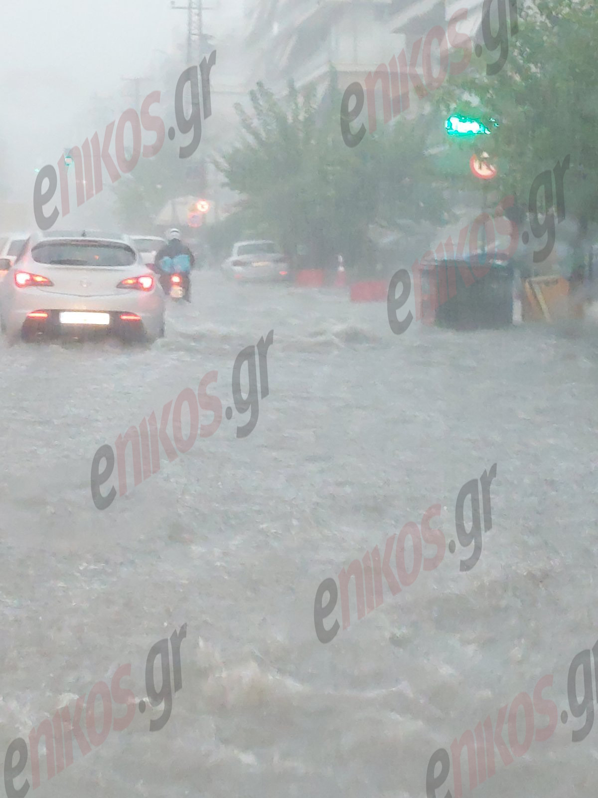 Η νεροποντή στην οδό Πανεπιστημίου στο ύψος του Καθολικού Καθεδρικού Ναού
