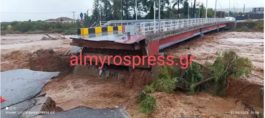 Κατέρρευσε, σήμερα το πρωί, και η μεγάλη γέφυρα του χειμάρρου Ξηριά στην περιοχή του Αλμυρού. Πρόκειται για μία ακόμη γέφυρα στη Μαγνησία που δεν άντεξε στην πίεση των τεράστιων όγκων νερού που κατέβασε ο χείμαρρος από την Οθρυ.