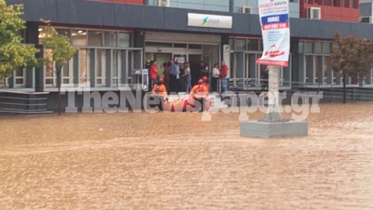 Ο απεγκλωβισμός εργαζομένων και πολιτών που βρίσκονταν στο κτίριο του ΔΕΔΔΗΕ και της ΔΕΗ στην οδό Λαρίσης έγινε με βάρκες, προκειμένου να μεταφερθούν σε ασφαλή μέρη και να επιστρέψουν στα σπίτια τους, χωρίς να κινδυνεύσουν.