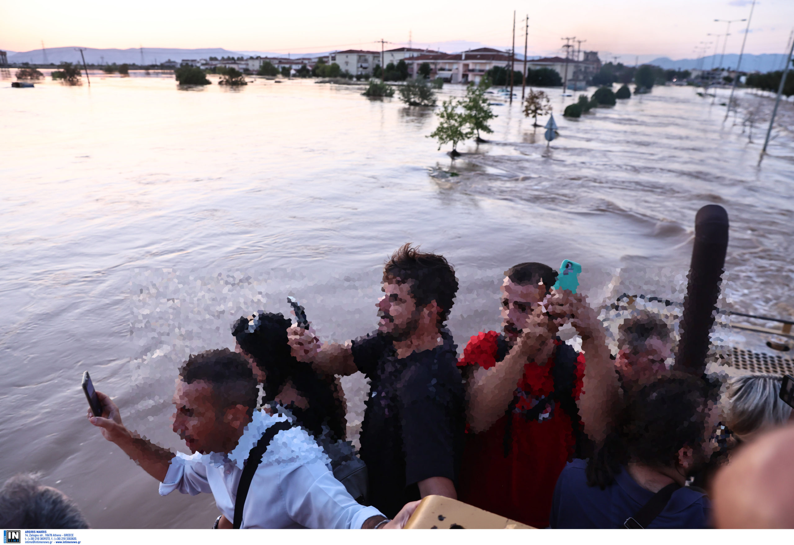 Κάποιοι, την ώρα που μεταφέρονται με ασφάλεια έξω από τις πλημμυρισμένες περιοχές, συνειδητοποιούν το σκηνικό της καταστροφής και βγάζουν τα κινητά τους τηλέφωνα, προκειμένου να καταγράψουν τις εικόνες της θλίψης.