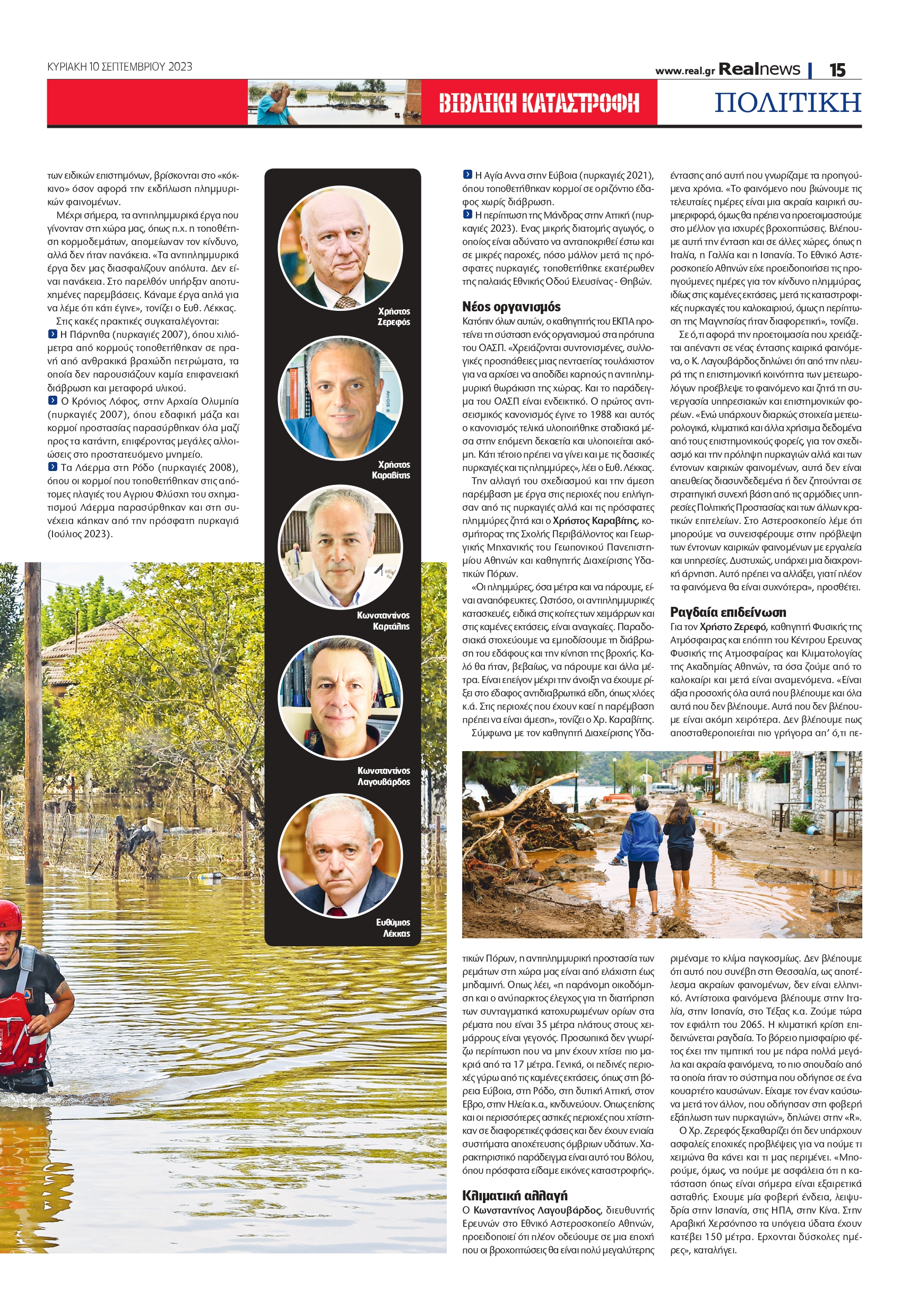 Για τον Χρήστο Ζερεφό, καθηγητή Φυσικής της Ατμόσφαιρας και επόπτη του Κέντρου Έρευνας Φυσικής της Ατμοσφαίρας και Κλιματολογίας της Ακαδημίας Αθηνών, τα όσα ζούμε από το καλοκαίρι και μετά είναι αναμενόμενα. «Είναι άξια προσοχής όλα αυτά που βλέπουμε και όλα αυτά που δεν βλέπουμε. Αυτά που δεν βλέπουμε είναι ακόμη χειρότερα. Δεν βλέπουμε πως αποσταθεροποιείται πιο γρήγορα απ’ ό, τι περιμέναμε το κλίμα παγκοσμίως. Δεν βλέπουμε ότι αυτό που συνέβη στη Θεσσαλία, ως αποτέλεσμα ακραίων φαινομένων, δεν είναι ελληνικό. Αντίστοιχα φαινόμενα βλέπουμε στην Ιταλία, στην Ισπανία, στο Τέξας κ.α. Ζούμε τώρα τον εφιάλτη του 2065. Η κλιματική κρίση επιδεινώνεται ραγδαία. Το βόρειο ημισφαίριο φέτος έχει την τιμητική του με πάρα πολλά μεγάλα και ακραία φαινόμενα, το πιο σπουδαίο από τα οποία ήταν το σύστημα που οδήγησε σε ένα κουαρτέτο καυσώνων. Είχαμε τον έναν καύσωνα μετά τον άλλον, που οδήγησαν στη φοβερή εξάπλωση των πυρκαγιών», δηλώνει στην «R».