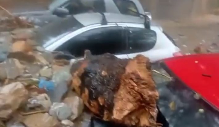 Ο όγκος του νερού που έπεσε στην περιοχή είναι τόσο μεγάλος, που αυτοκίνητα που ήταν στο πάρκινγκ της περιοχής παρασύρθηκαν και μερικά από αυτά κατέληξαν στη θάλασσα.
