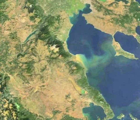 Ερωτήματα εγείρονται για την ασφάλεια των νερών στις ακτές της Χαλκιδικής μετά τη δορυφορική εικόνα που δείχνει λάσπη -και ενδεχομένως φερτά υλικά- από την πλημμυρισμένη Θεσσαλία να φτάνει μέχρι τη δυτική πλευρά της χερσονήσου της Κασσάνδρας. Ο χειμμαρώδης, λόγω της κακοκαιρίας Daniel, ποταμός έχυσε τόνους λάσπη στις εκβολές του στην περιοχή της Νέας Μεσάγκαλας στην περιοχή της Λάρισας.
