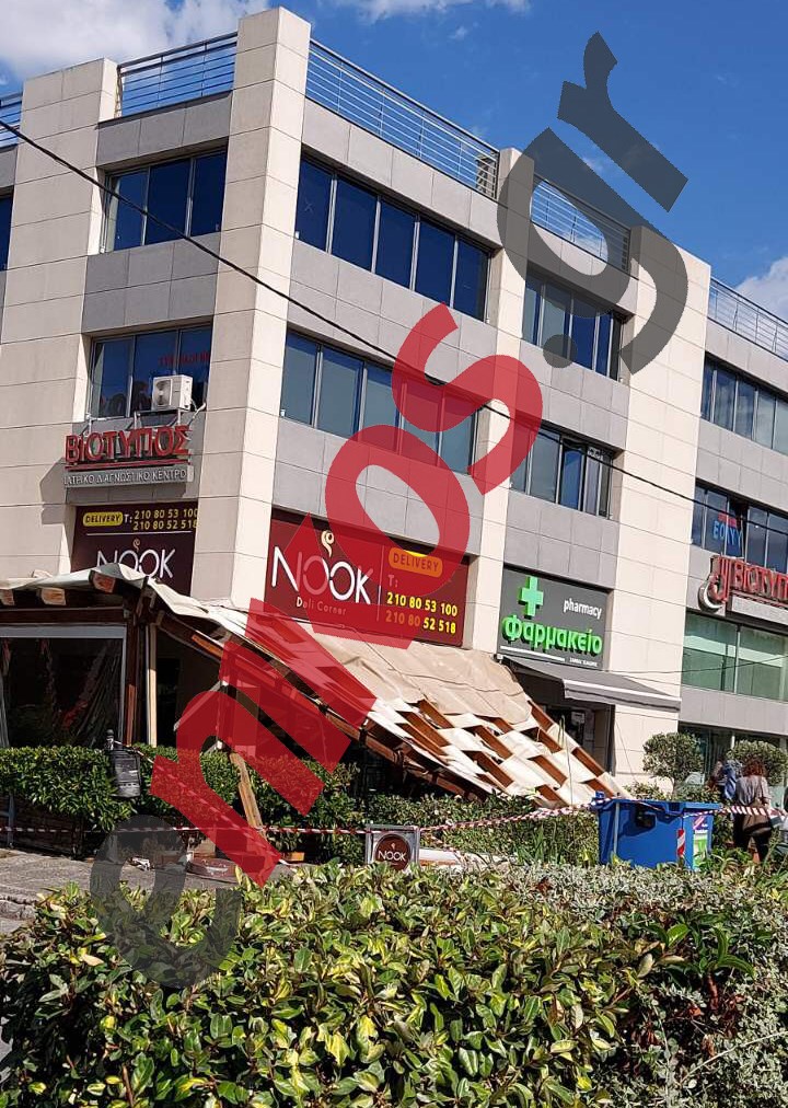Στην περιοχή της Πεύκης, από τους ισχυρούς άνεμους κατέρρευσε στέγη καφετέριας στη Λεωφόρο Ειρήνης.