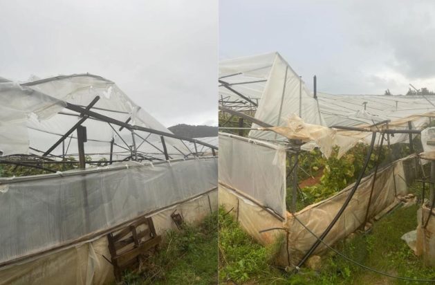 Οι παρακάτω φωτογραφίες, από το χωριό Κλήμα του δήμου Φαιστού, αποτυπώνουν το μέγεθος των προβλημάτων που άφησε πίσω της η κακοκαιρία. Συγκεκριμένα, ένα θερμοκήπιο υπέστη σοβαρές ζημιές καθώς ξηλώθηκε εντελώς η σκεπαστή οροφή του από τον ισχυρό άνεμο και την έντονη βροχόπτωση.