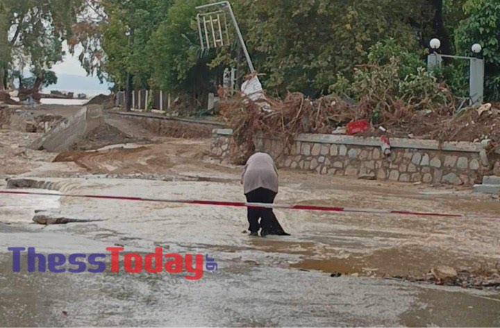 Το τοπίο που ξεπρόβαλλε για τους ελάχιστους πια κατοίκους που έχουν απομείνει στον Πλατανιά, χαοτικό. «Δεν υπάρχει σωτηρία για εμάς… δεν υπάρχει μέλλον», ψιθυρίζει η Ελένη Γεωργακούδη (κάτω φωτογραφία του ThessToday.gr), κάτοικος που με τα γυμνά της χέρια πλένει στον εμφανώς βρώμικο ποταμό, τα αδιάβροχα ρούχα της. «Καταστραφήκαμε» προσθέτει, όσο χρησιμοποιεί ως πλυντήριο τα λασπόνερα. Το δικό της, όπως εξηγεί, παρασύρθηκε κάπου στον Παγασητικό.