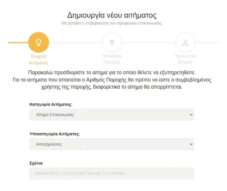 -Εν συνεχεία θα πρέπει να πάνε στην επιλογή κατηγορία αιτήματος και επιλέξουν «αίτημα επικοινωνίας» και στην υποκατηγορία αιτήματος την επιλογή «αποζημιώσεις».