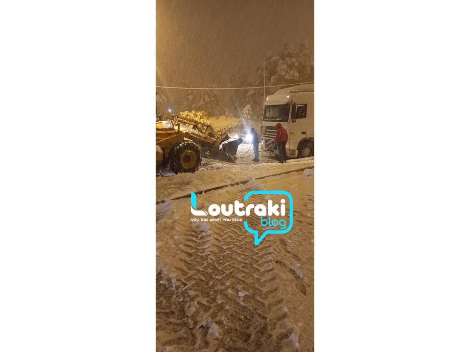 Ένα μεγάλο όχημα επίσης, συγκεκριμένα βυτιοφόρο, κόλλησε, με αποτέλεσμα να χρειαστεί μπουλντόζα του δήμου Λουτρακίου για να το τραβήξει.