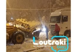 Ένα μεγάλο όχημα επίσης, συγκεκριμένα βυτιοφόρο, κόλλησε, με αποτέλεσμα να χρειαστεί μπουλντόζα του δήμου Λουτρακίου για να το τραβήξει.
