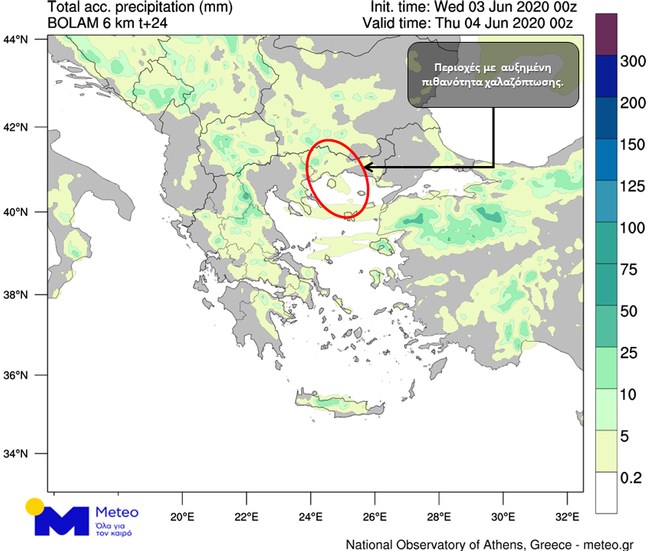 Αυξημένη πιθανότητα χαλαζοπτώσεων υπάρχει στα βορειοανατολικά. Οι βροχές μετά το απόγευμα θα σταματήσουν, ενώ την Πέμπτη, δεν αναμένονται φαινόμενα.
