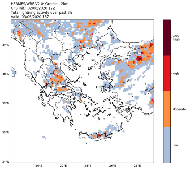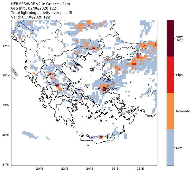 Τα φαινόμενα τοπικά θα συνοδεύονται από αυξημένη ηλεκτρική δραστηριότητα. Σύμφωνα με το σύστημα πρόγνωσης κεραυνικής δραστηριότητας του Εθνικού Αστεροσκοπείο Αθηνών / Meteo.gr, το οποίο αναπτύχθηκε στα πλαίσια του συστήματος TALOS, η κεραυνική δραστηριότητα κατά τις μεσημεριανές και απογευματινές ώρες σήμερα αναμένεται να είναι αυξημένη στα κεντρικά και βόρεια ηπειρωτικά, καθώς επίσης και στα νησιά της Χίου και της Κρήτης.