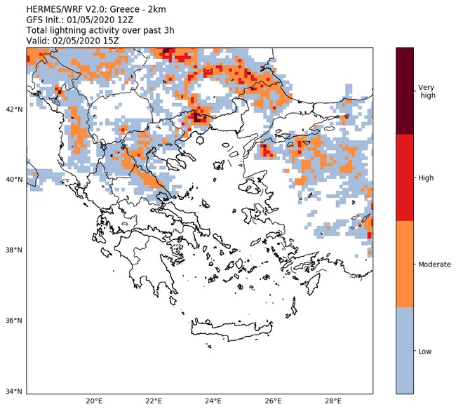 Σύμφωνα με τα προγνωστικά στοιχεία του συστήματος πρόγνωσης κεραυνών TALOS, οι καταιγίδες που θα εκδηλωθούν σήμερα στη Θεσσαλία και ιδιαίτερα στη Βόρεια Ελλάδα θα συνοδεύονται από έντονη κεραυνική δραστηριότητα.