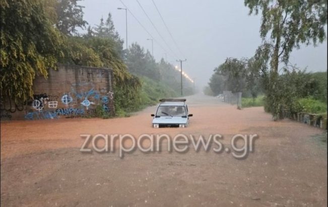 Σύμφωνα με το zarpanews.gr, το νερό έχει φτάσει σε αρκετά μεγάλο ύψος και τα οχήματα κινούνται με δυσκολία.