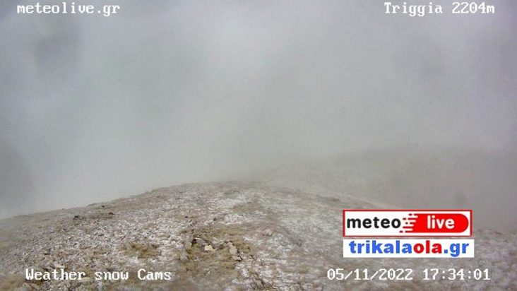 Συγκεκριμένα, στην κορυφή Τριγγία (2204μ. υψόμετρο) Κλεινοβού Καλαμπάκας στον νομό Τρικάλων, άρχισε να πέφτει και χιόνι, το οποίο «πασπάλισε» το βουνό.