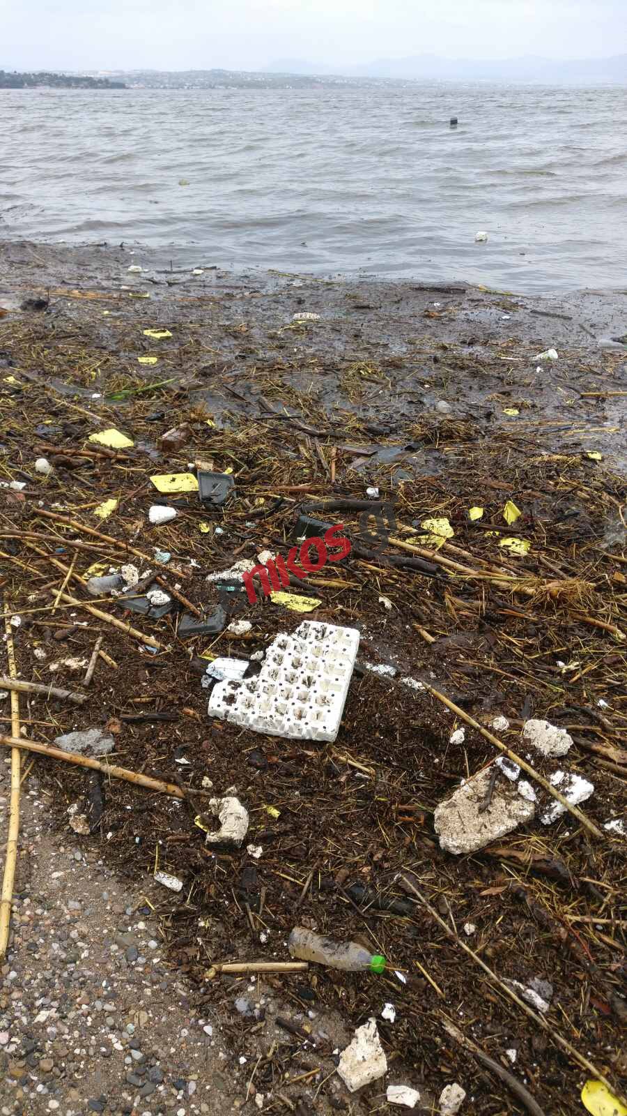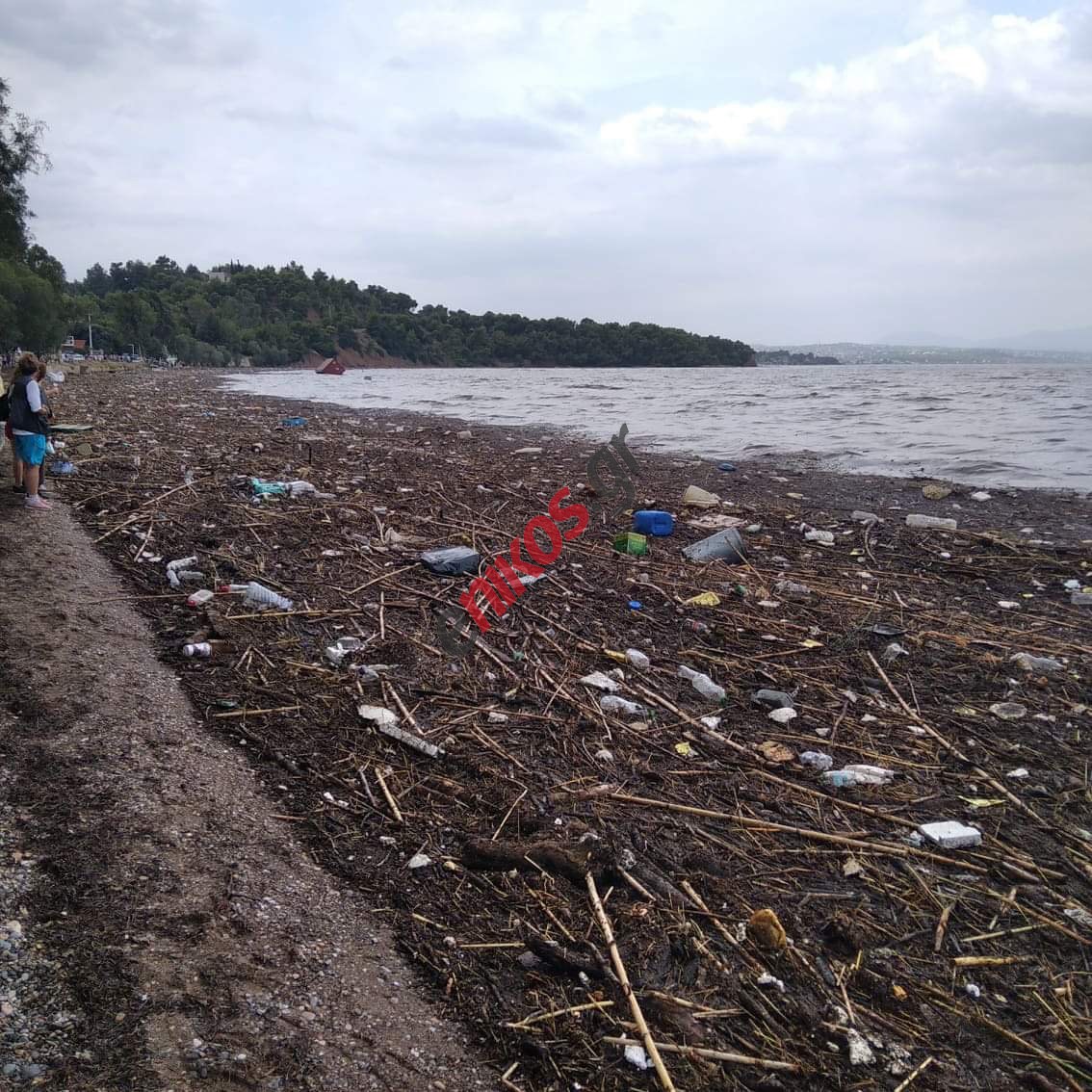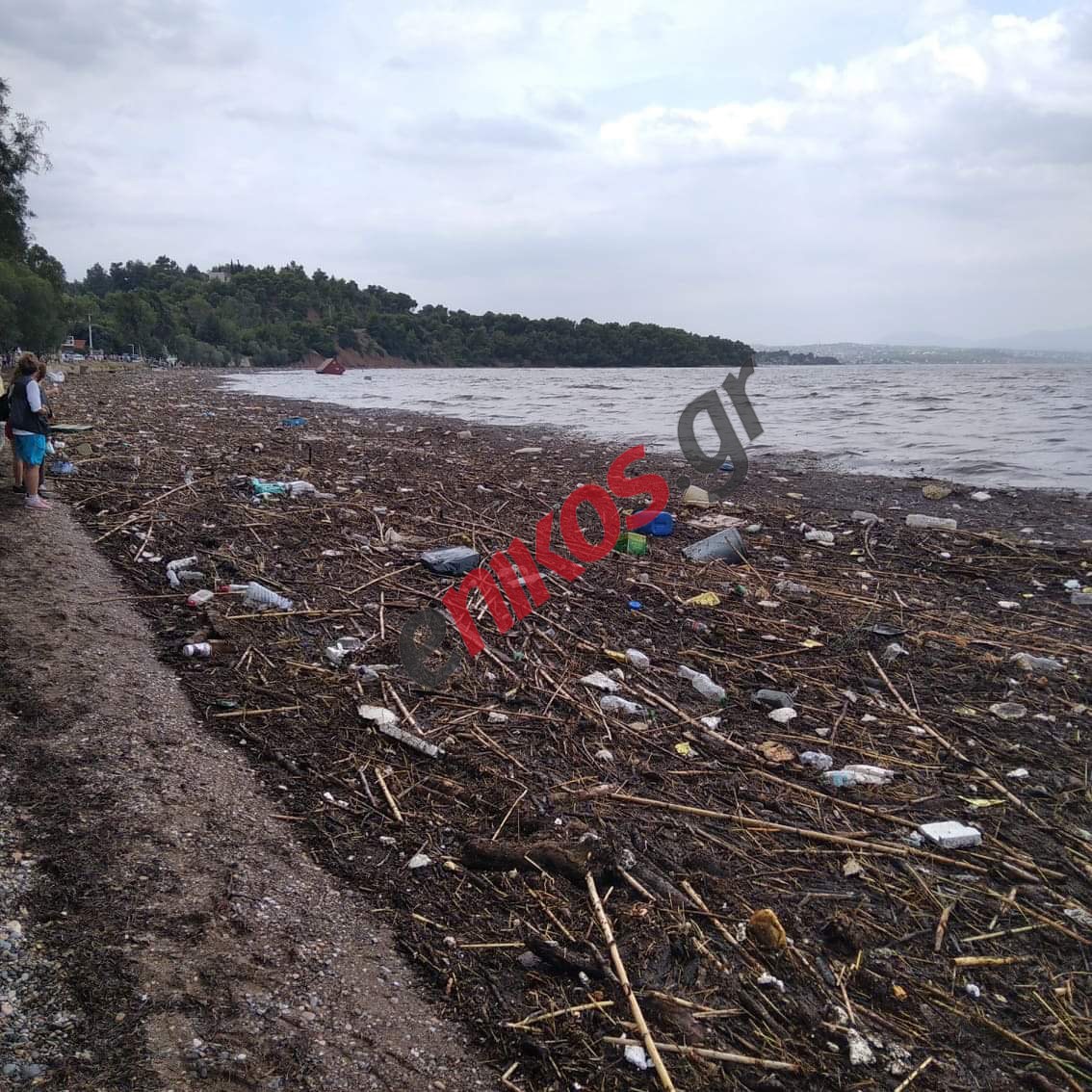 Όπως φαίνεται και στις φωτογραφίες που μας έστειλε αναγνώστης του enikos.gr, ξεβράστηκε ακόμη και κοντέινερ στην παραλία στο Χαλκούτσι Ωρωπού.