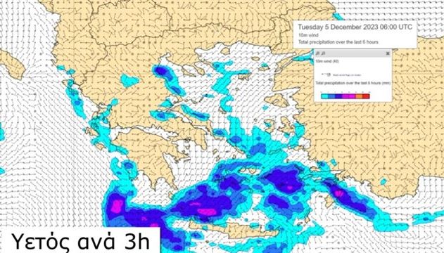 Β. Από τις πρωινές ώρες της Δευτέρας (04-12-2023) μέχρι αργά το απόγευμα τα φαινόμενα θα επηρεάσουν κατά τόπους την ανατολική Στερεά, την Εύβοια, την ανατολική και νότια Πελοπόννησο και την ανατολική νησιωτική χώρα.