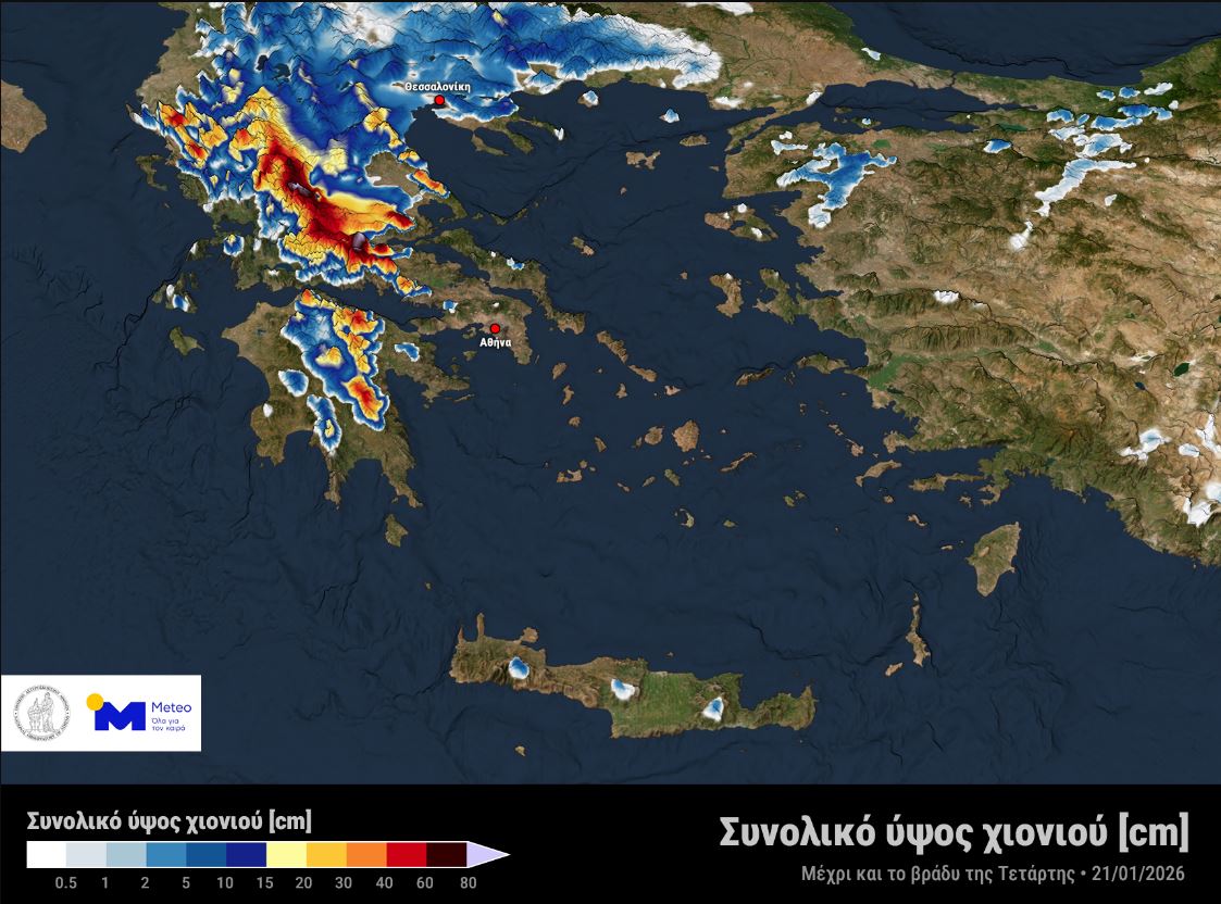 - οι τοπικά έντονες χιονοπτώσεις την Τετάρτη στα ορεινά-ημιορεινά της ηπειρωτικής Ελλάδας και σε περιοχές της Θεσσαλίας και της Μακεδονίας με χαμηλό υψόμετρο και
