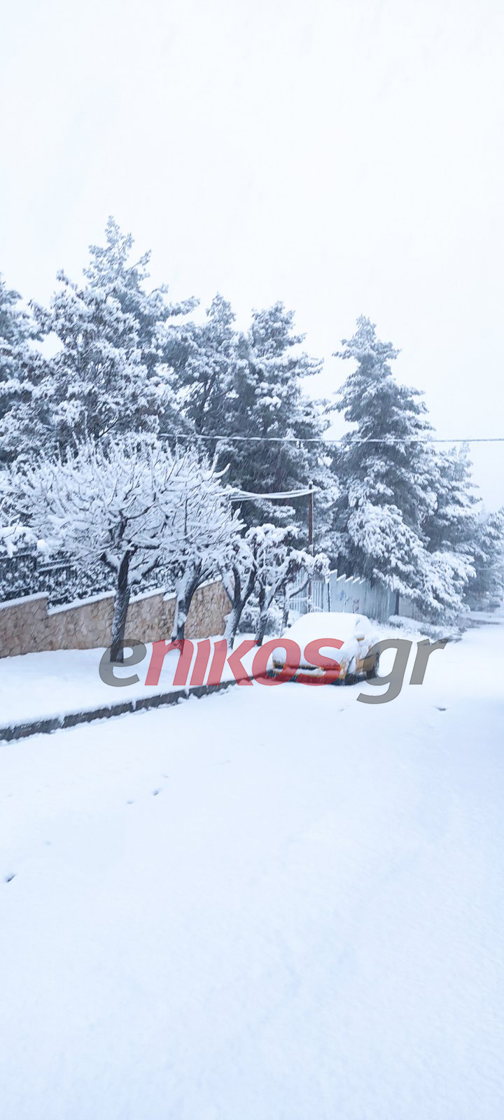 Το χιόνι έχει καλύψει τα πάντα ενώ όπως φαίνεται και στις φωτογραφίες που έστειλε αναγνώστης του enikos.gr, οι δρόμοι δεν έχουν καθαριστεί με αποτέλεσμα να είναι δύσκολη η μετακίνηση των οχημάτων.