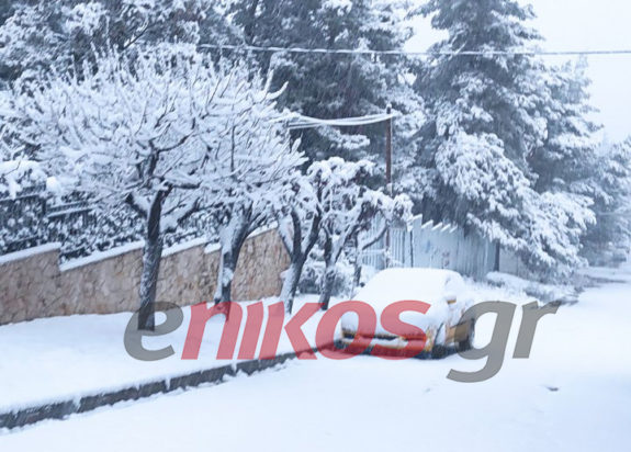 Το χιόνι έχει καλύψει τα πάντα ενώ όπως φαίνεται και στις φωτογραφίες που έστειλε αναγνώστης του enikos.gr, οι δρόμοι δεν έχουν καθαριστεί με αποτέλεσμα να είναι δύσκολη η μετακίνηση των οχημάτων.