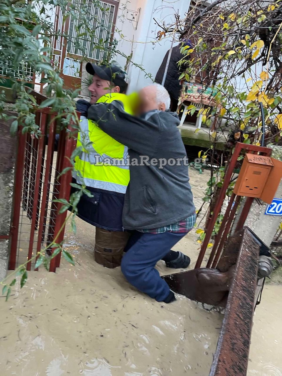Οι πυροσβέστες της 7ης ΕΚΑΚ με τις βάρκες, αλλά και οι άνθρωποι της Πολιτικής Προστασίας του Δήμου Λαμιέων, με ό,τι όχημα είχαν στη διάθεσή τους προσπαθούσαν να προσεγγίσουν τα σπίτια για να απεγκλωβίσουν τους κατοίκους. Είναι χαρακτηριστικό ότι κουβαλούσαν τους ηλικιωμένους στην πλάτη, ενώ άλλους τους απομάκρυναν με μπουλντόζες και βάρκες.