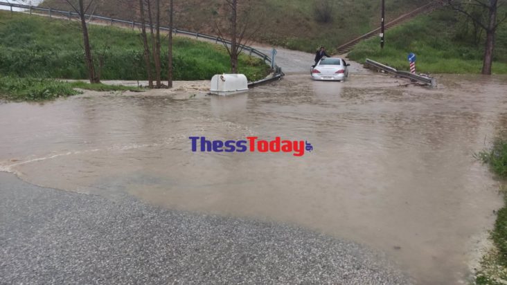 Λίγο πιο κάτω, στην οδό Γεννηματά, στο ρέμα της Πυλαίας, σχηματίστηκε μια μεγάλη λίμνη και για ακόμη μια φορά ένας οδηγός εγκλωβίστηκε από τον όγκο των νερών που “κατέβαιναν”. Μάλιστα ο οδηγός δε δίστασε να ανέβει στην οροφή του αυτοκινήτου του για να καλέσει την οδική βοήθεια.