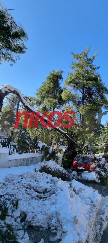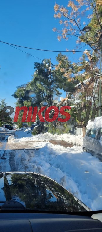 Στην υπερυψωμένη συνοικία της Ρέας στην περιοχή καταγράφονται αρκετές πτώσεις δέντρων, τα οποία λύγισαν υπό τον τεράστιο όγκο χιονιού που έπεσε, όπως φαίνεται σε φωτογραφίες που έστειλε αναγνώστης του enikos.gr. Άλλα δέντρα έσπασαν και άλλα έριξαν τα χιονισμένα κλαδιά τους.