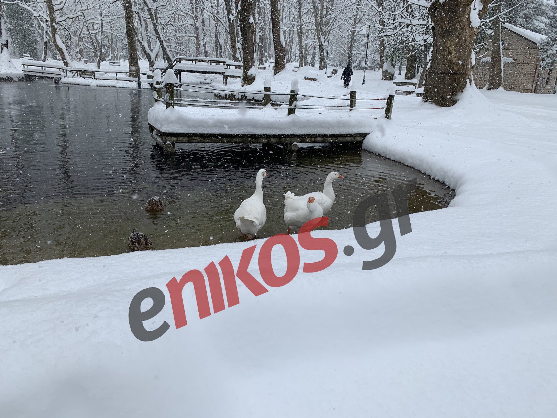 Στη Νάουσα οι χιονοπτώσεις συνεχίστηκαν και σήμερα και το τοπίο είναι μαγευτικό, καθώς το έχει “στρώσει” σε δρόμους και πάρκα.